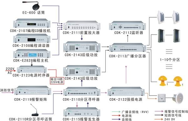 5、可与消防信号相连接,具有消防联动报警功能,实现全区报警;