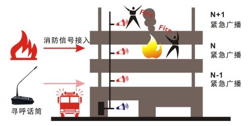公共广播系统通过消防信号接入器自动接受消防中心信号,同时触发相应设备,实现消防报警,同时能实现N±1、2、3、4等方式的邻层报警功能,帮助客人及酒店工作人员有组织的进行撤离。