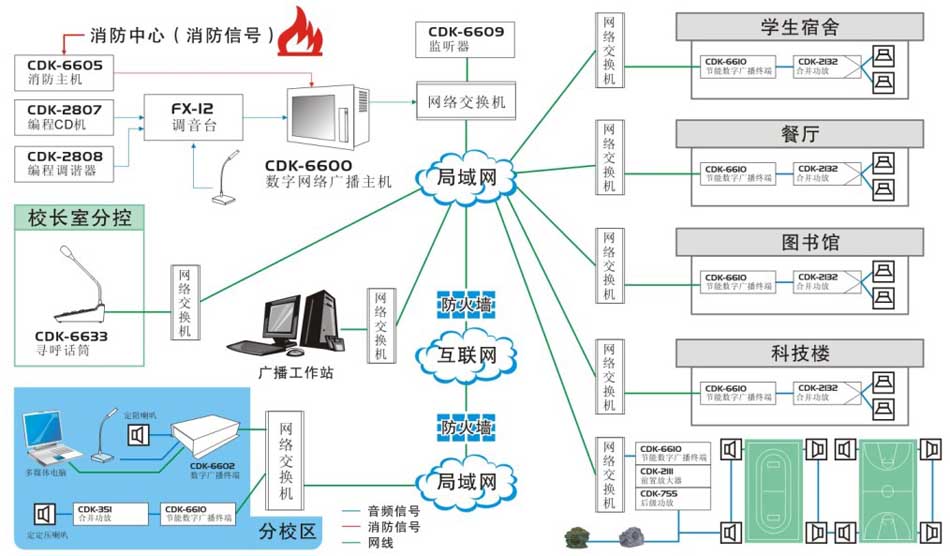 数字广播终端与主机连接是以TCP/IP为传输介质,终端之间互不影响,系统可以在局域网内、广域网内播音、控制等,且安装灵活、维护便捷。
