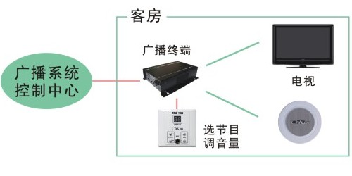 酒店客房广播人性化设计,客人通过终端管理单元自主选择播放的节目源,且音量可调,也可接连到电视音频。